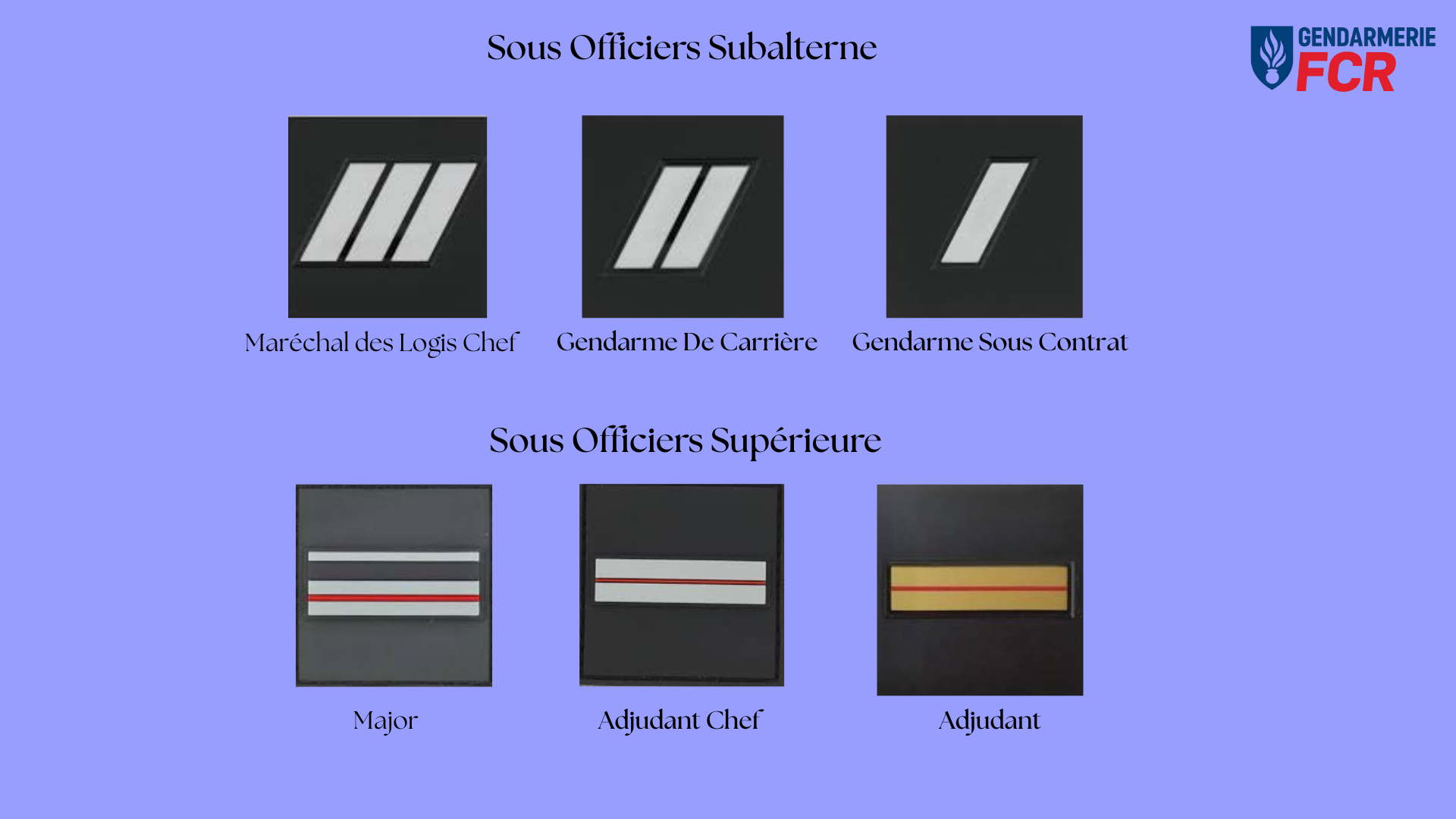 ➡ Adjudant (SOSP Adj) Responsable de l'organisation et du commandement d'un groupe Gère la formation des jeunes gendarmes Pilote des missions spécifiques (enquête, intervention, etc.)