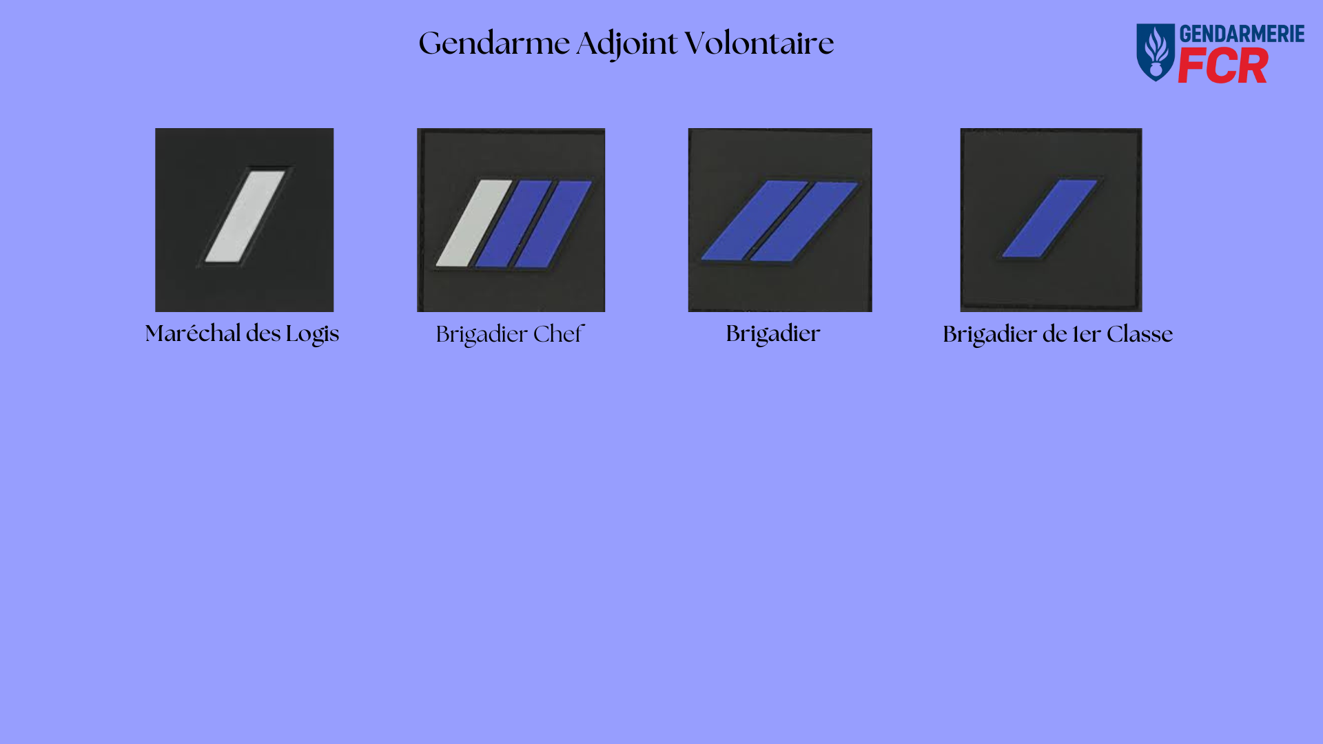 ➡ Brigadier Chef (GAV BC) Le Brigadier-Chef est un Gendarme Adjoint Volontaire occupant un poste intermédiaire entre les gendarmes de base et les gradés supérieurs. Son rôle est d'encadrer, superviser et exécuter des missions spécifiques selon son affectation.